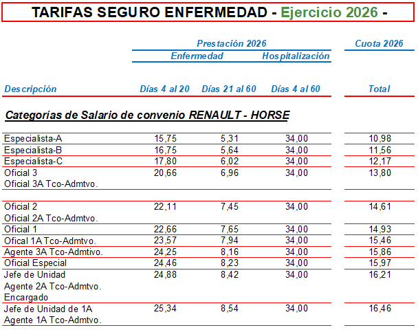 Las cuotas y prestaciones se actualizan cada año con efectos desde el 1 de